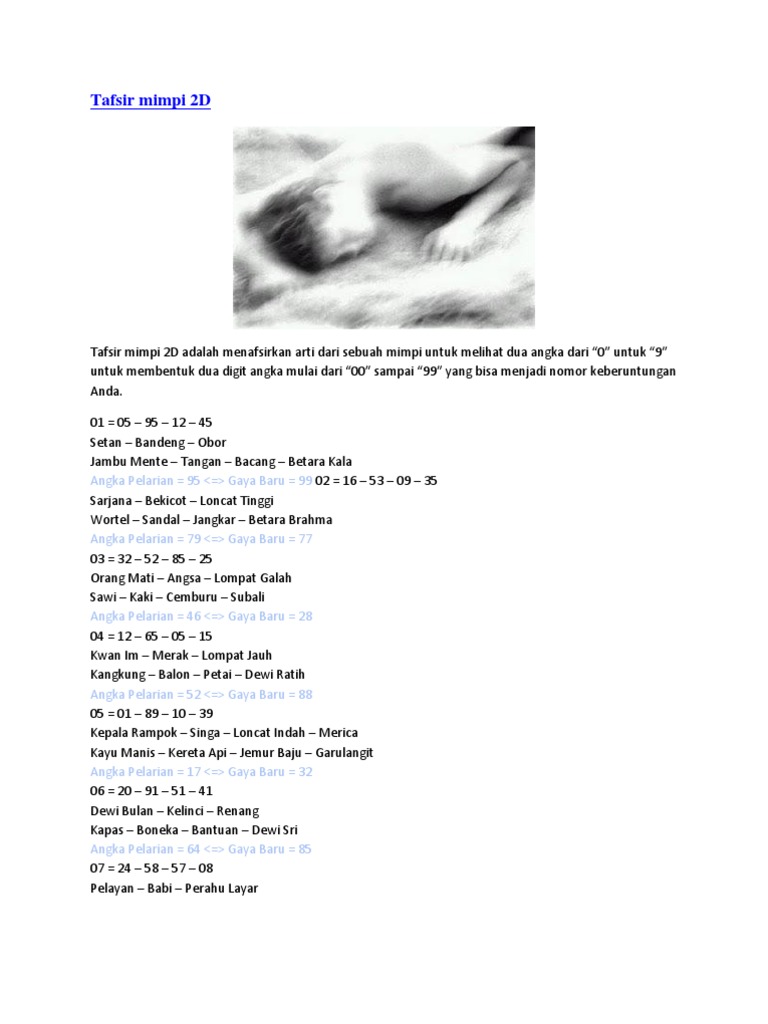 Uncategorized Buku Mimpi 2D Anak Sakti Buku tafsir mimpi 2d ini adalah yang paling banyak digunakan oleh bettor untuk menentukan buku tafsir mimpi ini juga biasa disebut erek erek 2d Ball itu bola telah menelusuri sejumlah situs yang berisi banyak tafsir mimpi togel namun kebanyakan hanya menyertakan taysen dan pelarian